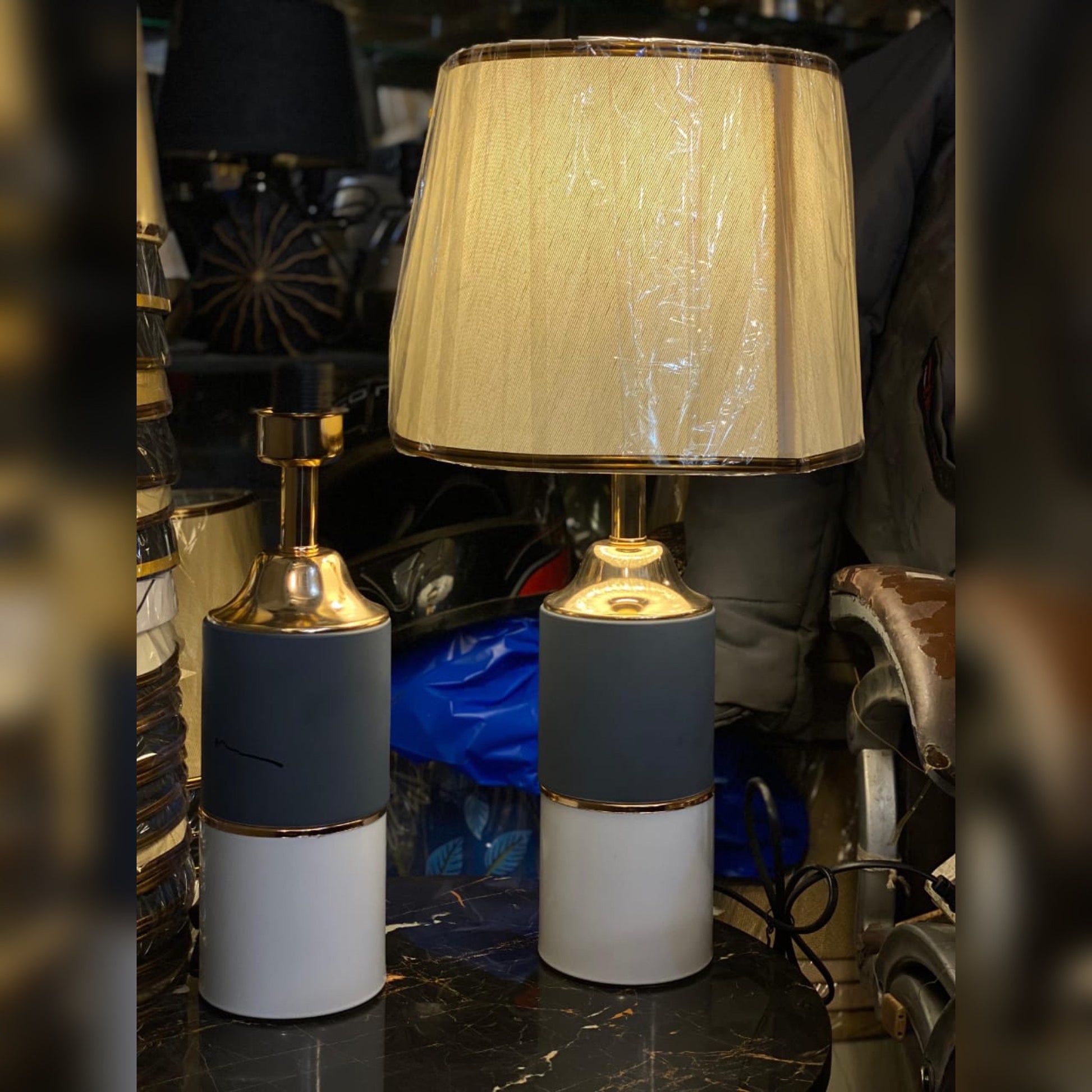 Stylish two-tone ceramic base (black & white) with golden accents